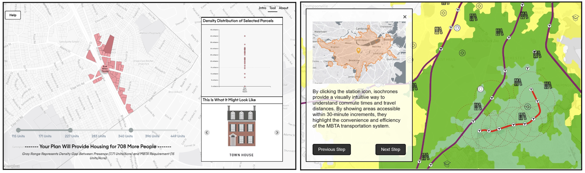 What makes this approach particularly effective is how it demystifies abstract concepts like "units per acre" by connecting them to tangible outcomes. Rather than telling residents that a 15-unit-per-acre density requirement won't dramatically alter their community's character, we show them. The tool reveals that many existing neighborhoods already approach or exceed these densities while maintaining their cherished local character. By making both the scale of change and its benefits immediately visible, residents can make more informed judgments about the true trade-offs involved.